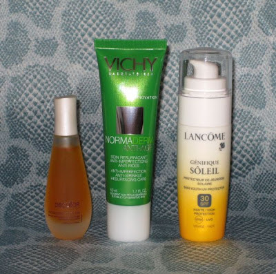 מיד לאחר הסרום מגיע שלב הלחות לעור. בקיץ זה לפעמים שלב בלתי אפשרי עבורי, אני מרגישה שלמרות שאני במזגן הלחות מתקשה להיספג. יש מקרים שאני פשוט מוותרת על הלחות ומסתפקת בסרום עשיר כמו הדקלאור כאן או הסרום של איב סן לורן העשיר. זה מספק אותי מבחינת לחות, בערב כבר אדאג לקרם בכל מקרה. אבל עדיין אני משתדלת לא לוותר על השלב הזה בבוקר. לשמחתי מצאתי קרם לחות שאני יכולה לחיות איתו בלי לוותר עליו מדי יום כי נספג ברגע, הקרם נורמדרם (Normaderm) של וישי עם ויטמין C. האמת שמההתחלה הקרם הזה סיקרן אותי כי הוא גם מוגדר כאנטי אייג'ינג וגם מיועד לעור שמן ורגיש, שילוב ממש מפתיע. רוב מוצרי האנטי אייג'ינג אינם מיועדים לעור שמן אלא להיפך, הם עשירים מאוד. הקרם הזה מציע טיפול בפגמים ובקמטים מהם סובל גם עור שמן למרות שלרוב המוצרים שמיועדים לעור כזה מטפלים באיזון השומניות שלו ולא בענייני תיקון. אז את דעתי על מוצרי אנטי אייג'ינג כבר כתבתי בהרחבה בפוסט "דאוס אקס מכינה" ואין צורך שאחזור על זה שוב. מה שכן, הקרם הזה הוא תגלית השנה עבורי לקיץ ואני נהנית ממנו מאוד בלי כל קשר להבטחות שלו, שאם הן ימומשו יום אחד אז נהדר. זהו קרם קל (לא תחליב), נוטה לג'ל בגוון ירקרק חיוור, עם ניחוח מדהים ומאוד נעים וקל למריחה. הוא נספג ברגע ומשאיר את העור צח לגמרי ונקי משמנוניות כלשהי, ממש כאילו ממתין לשכבה הבאה אחריו.